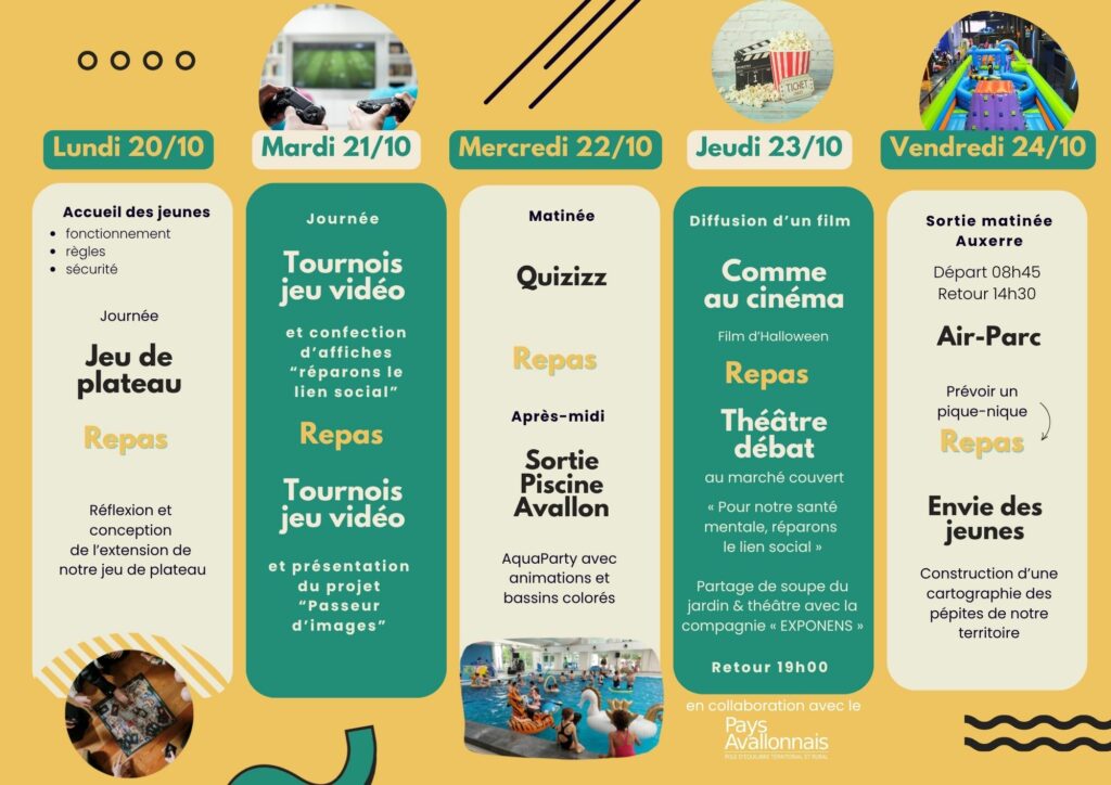 Du lundi 20 au vendredi 24 octobre 2025, les collégiens peuvent profiter des animations ados par journées ou demi-journées.